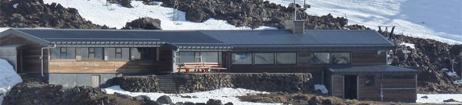 Situated about 50m above the bottom of the Rangatira Express, the club commands magnificent views North to Ngauruhoe and across the National Park basin. It is within easy reach on foot from the carpark or you can ski in from the top of the first chair.